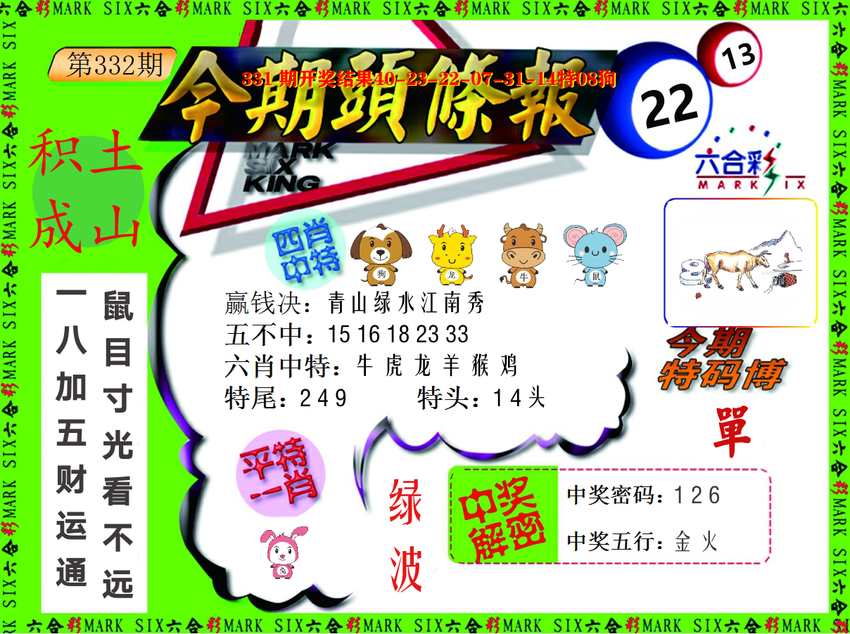 332期⑤肖【牛虎鸡猴狗】开 ?? 准